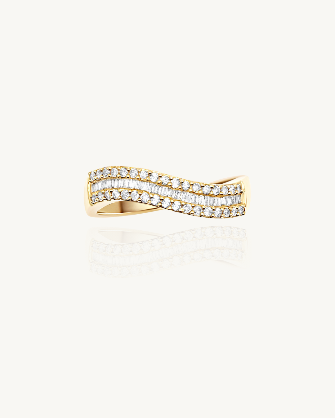 Crossover Diamond Ring in 14K Yellow and White Gold