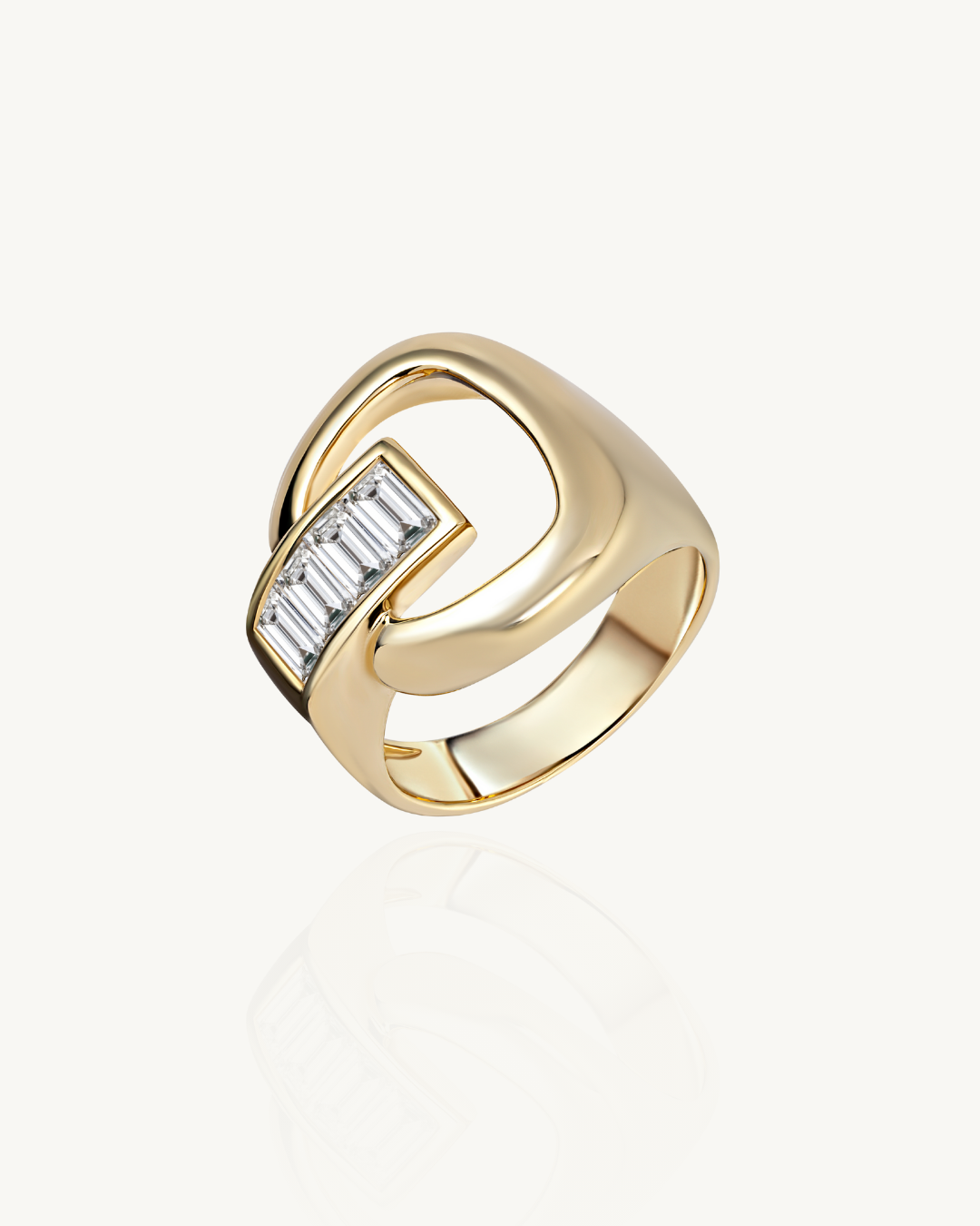 Croissant Diamond Dome Ring in 18K Yellow Gold