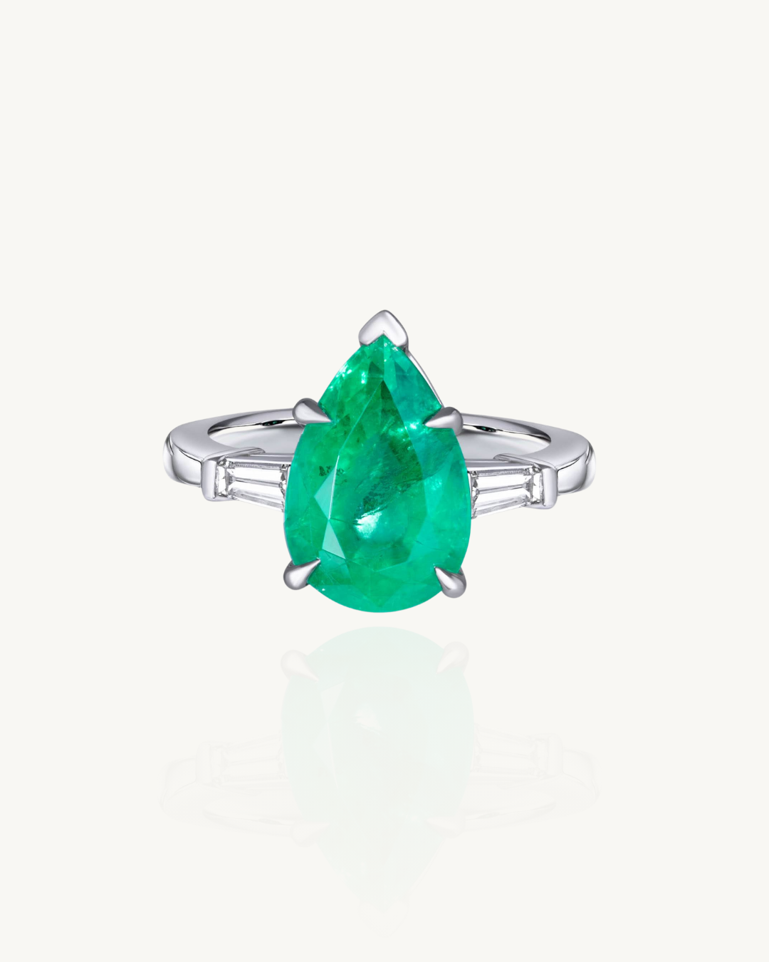 Two-Stone Emerald and Diamond Ring in 18K Yellow Gold