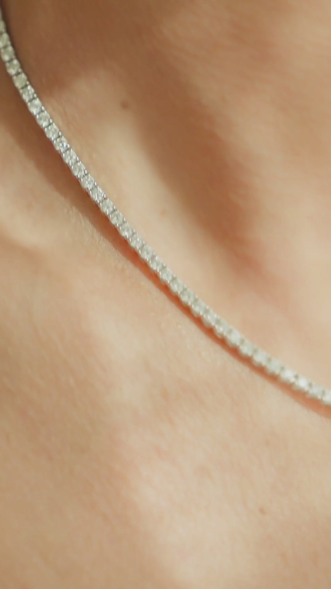 The balanced design — bold yet refined — allows the diamonds to take center stage, creating a radiant cascade of light that complements both casual elegance and formal glamour. Perfectly contoured to the neckline, the Carol Necklace brings effortless sophistication to any occasion, becoming a staple piece for those who appreciate enduring style and luminous beauty.